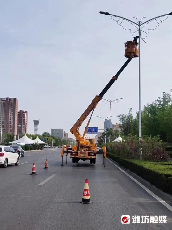 5月4日,记者了解到,为保障假期城市亮化和道路照明,潍坊市市政公用事业服务中心在做好疫情防控工作的同时,对照明亮化设施的巡查检查维修“不断档”,努力营造温馨祥和、流光溢彩的城市夜景。