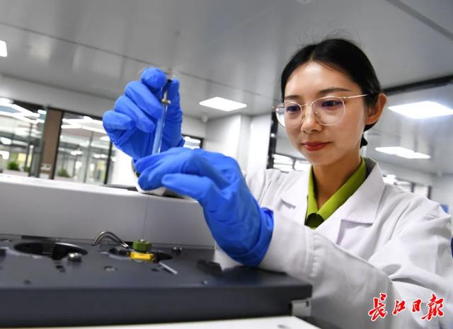 在宽敞明亮的骆驼集团武汉创新研发中心大楼实验室,材料检测工程师蔡敏(32岁)在x射线衍射仪和气相色谱质谱联用仪上做锂电池原材料的理化分析,为新能源锂电池的研发提供数据分析材料。她硕士毕业于武汉理工大学材料科学与工程专业,入职骆驼集团已6年,为新能源锂电池的研发提供数据分析材料。