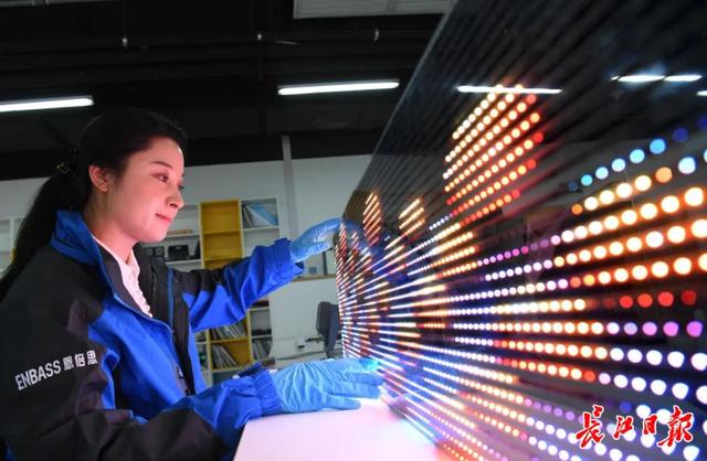 4月29日,未来科技城B4座9楼,武汉恩倍思科技有限公司,总设计师尹晴云(35岁)在研发中心检测一款自主研发的超薄LED新产品。