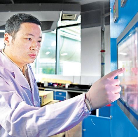 武汉华科福赛新能源有限责任公司工程师江一凡(31岁)在做燃料电池电堆测试等实验。江一凡从中南民族大学物理化学专业硕士毕业后进入武汉华科福赛公司,成为固体氧化物燃料电池研发团队的一员。