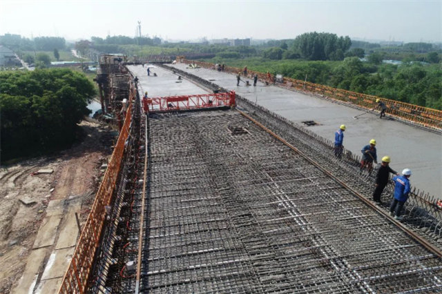 常泰长江大桥加快建设 常州侧首联支架现浇箱梁浇筑完成