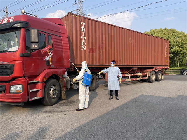 钟楼区“跟车志愿服务队”开展货车消杀工作