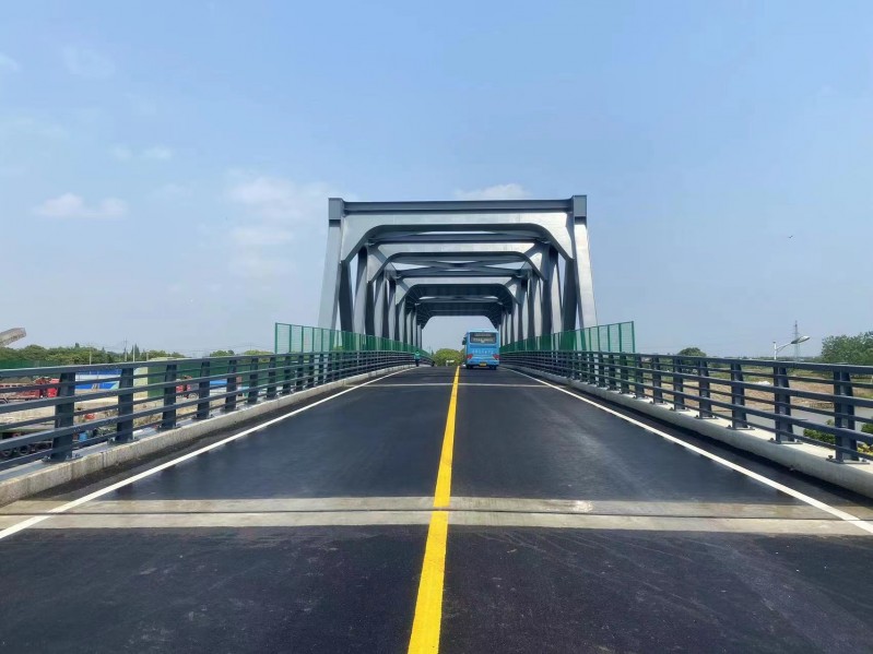 经过一年的重建,新桥最终于5月8日建成通车。新桥外型简约,美观大方,同时技术含量高、施工难度大,主桥钢桁梁制作及安装是本工程的施工难点,也是该桥施工中的亮点工序。该桥的通车为周边群众出行提供了极大的便利,也将极大地促进地方经济发展。