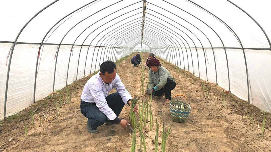 “今年新建的一批双层大棚,能将芦笋采割期延长到11月,加上粗加工和冷库保鲜储藏,今年年底芦笋销售的利润会大幅提高。”说到这,宋中宣自豪地说,现在,每到芦笋上市期,他的家庭农场能带动周边村民30余人就近就业、增加收入。“乡亲搭把手忙一下,每月能多赚2000元。致富肩并肩,日子更红火!”