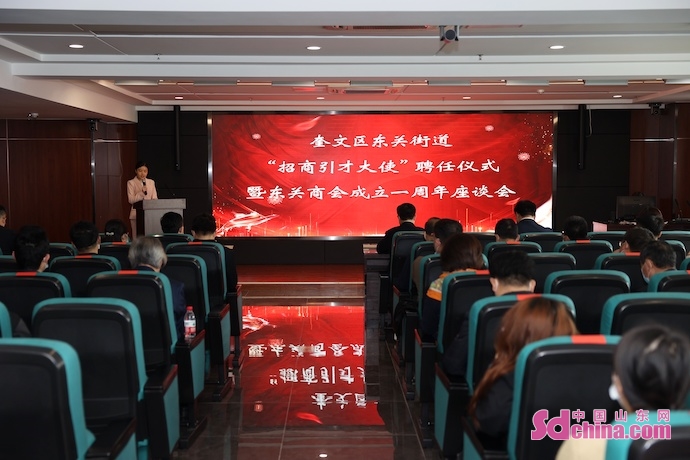 中国山东网-感知山东4月29日讯 (记者 韩蓓蓓) 4月29日,潍坊奎文区东关街道“招商引才大使”聘任仪式暨东关商会成立一周年座谈会举行。