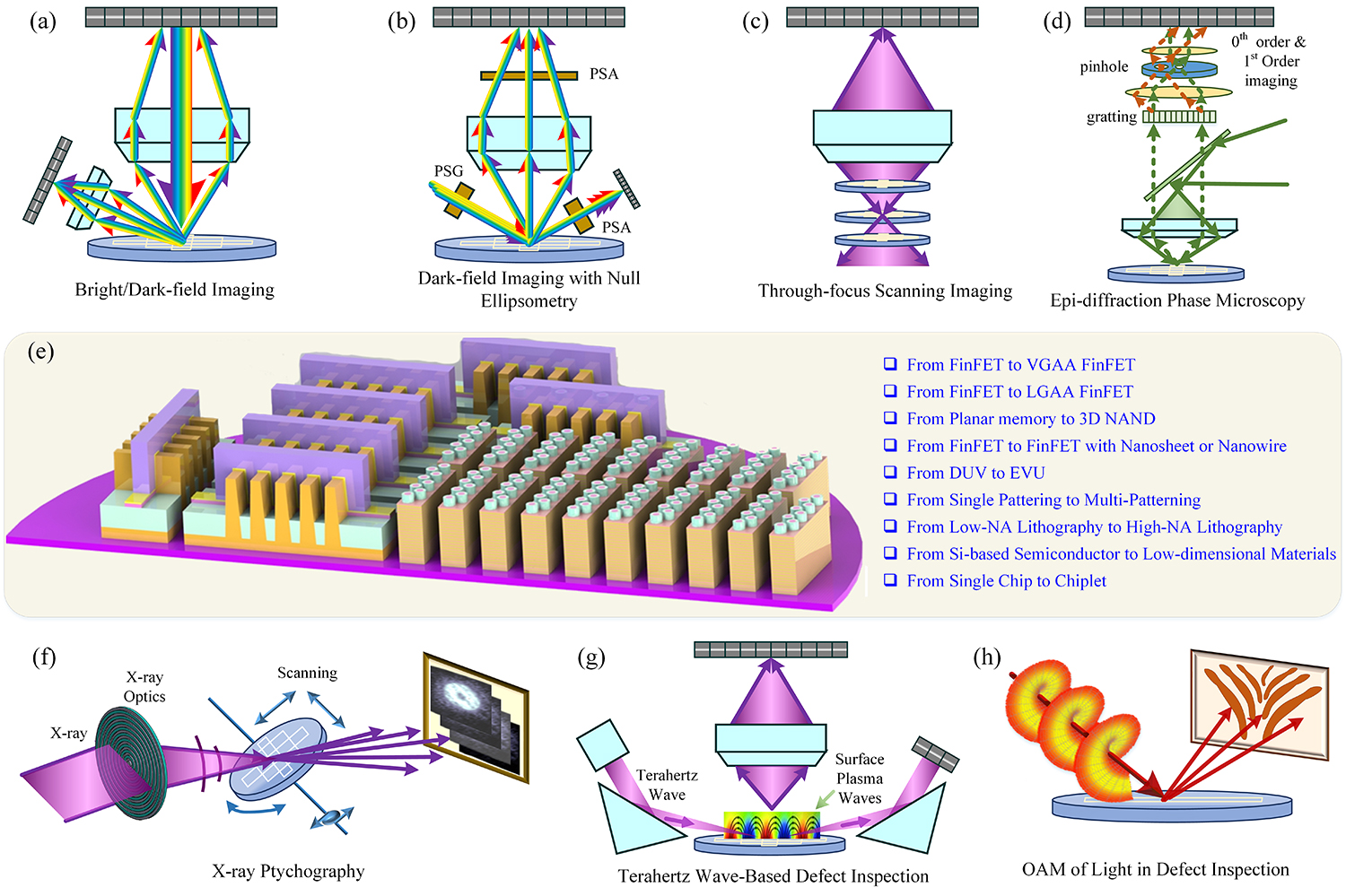 随着智能终端、无线通信与网络基础设施、智能驾驶、云计算、智慧医疗等产业的蓬勃发展,先进集成电路的关键尺寸进一步微缩至亚10nm尺度,图形化晶圆上制造缺陷(包括随机缺陷与系统缺陷)的识别、定位和分类变得越来越具有挑战性。传统明场检测方法虽然是当前晶圆缺陷检测的主流技术,但该方法受制于光学成像分辨率极限和弱散射信号捕获能力极限而变得难以为继,因此亟需探索具有更高成像分辨率和更强缺陷散射信号捕获性能的缺陷检测新方法。