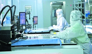 走进晶泰科公司二楼的生产车间,工人穿着防尘服有条不紊地忙着生产,两名工程师紧盯显屏上的产品数据。二期厂房里,10多名工人在进行装修作业。