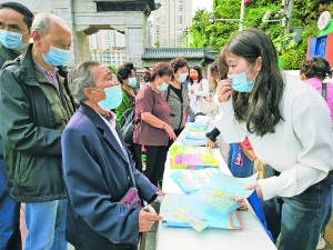 工作人员在黔灵山公园向市民介绍防灾减灾知识。