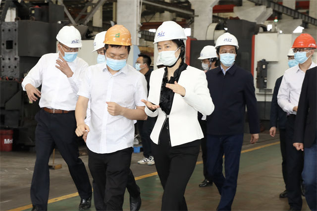 江苏金源高端装备股份有限公司主要从事电力、海洋工程、轨道交通、矿山机械等高端装备零部件研发制造,其主导产品已成为风力发电装备的关键基础部件,国内国际市场占有率均位列第一。盛蕾走进生产车间,仔细询问企业在生产经营中存在的困难和需求,要求相关部门靠前精准服务,更好为企业纾困解难;希望企业持续加大研发投入,积极主动拥抱资本市场,集聚更多优质资源要素,争当科技、产业、资本高质量融合发展的排头兵。