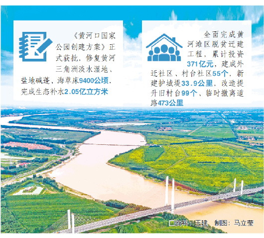 目前,《黄河口国家公园创建方案》正式获批,已修复黄河三角洲淡水湿地、盐地碱蓬、海草床9400公顷,完成生态补水2.05亿立方米,保护区13个取水口首次实现全部过水。黄河口国家公园已进入创建验收攻坚阶段。