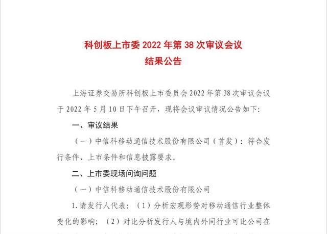 5月10日晚,科创板上市委公告:中信科移动通信技术股份有限公司(以下简称“信科移动”)IPO成功过会。总部位于武汉光谷的中国信科集团第7家上市公司产生。