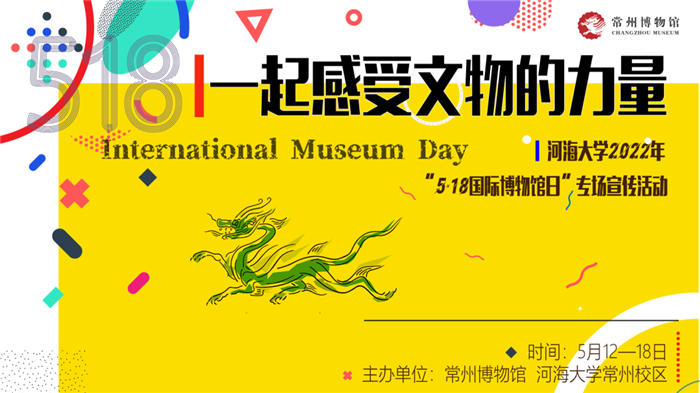 内容:对博物馆事业的了解、参与和关注,能使人更好地感知历史、热爱文物。为了提升同学们对“5·18国际博物馆日”和博物馆文化的认知,常州博物馆携手河海大学策划了本次活动,活动由创意设计制作和作品展示两部分构成,意在通过设计文创、拍摄视频、制作手账分享自己与博物馆的故事等方式,促进同学们了解常州历史与文化,感悟历史精神,增加群体凝聚力。