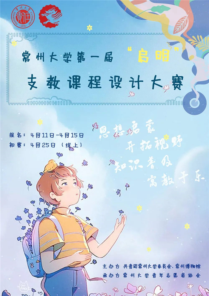 内容:为积极响应“双减”政策,促进博物馆文化的多元化传播,在“5·18国际博物馆日”来临之际,常州博物馆与常州大学联手开展支教课程设计大赛,引导同学们了解并深入思考乡村中小学生义务教育阶段的发展现状,结合学科特色,开展语言、艺术、历史、科学等主题课程设计,为高校学生社会实践活动提供新思路新方向,为乡村孩子提供思想启蒙、拓宽视野的机会。