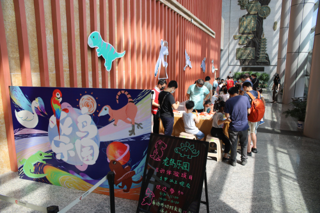 “‘龙·鸟’时光机”科普教育活动以2021年暑期原创科普特展“腾飞之龙——从龙到鸟的演化之旅”为依托,依据“受众细分”理念,面向幼儿园中班至小学低年级儿童、小学中高年级学生、爱好自然科学的青少年分别设计了多样化、个性化的参与体验活动。该系列活动从2021年7月持续至2022年1月,线下参与者逾8000人次,线上课程浏览量逾10000人次,线上直播讲解观看人数达55.85万人次。