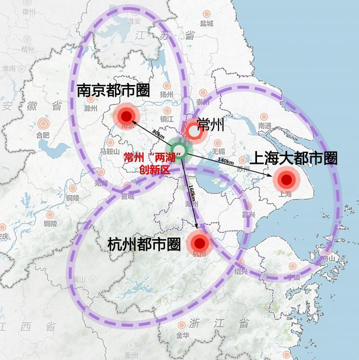 (常州位于上海、南京、杭州三大都市圈交汇处。图片由常州市自然资源和规划局提供。)