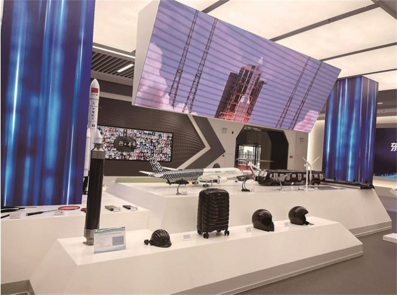 走进集萃碳纤维研究院的一楼展示大厅,展品陈列摆放有序,小的有头盔、雨伞,大的有列车车头罩和风电叶片梁,其中都用到了碳纤维复合材料。作为本土孵化平台,集萃碳纤维研究院成立于2020年,是由多方共同出资设立的国有参股公司,通过“技术研发、协同创新、检测认证、专业孵化、股权投资”五位一体的发展模式,以航空航天、风电轨交、智能制造等行业应用为牵引,着眼于共性关键技术、复材设计、智能装备、分析检测及服役评价等难题,提供解决方案。