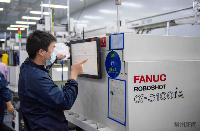 以“365”工程为桥梁,专业生产手机、笔记本电脑类声学配件的常州润邦模塑科技有限公司,加快建设“注塑云”平台,下料、工单、注塑、质检等环节全部实现数字化,订单执行情况、服务完成率等指标信息一目了然。记者看到,生产车间每台注塑机床旁,都有一套工业平板设备。这就是“企业上云”投入的设备之一。员工接收到下发的生产计划,会即刻输入设备,通过RFID识别芯片和生产工单进行绑定,随后技术员调试注塑,机械臂可自动取料、上料。所有的操作都根据指令完成。