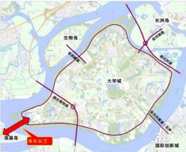 近年来,随着广州“南拓”战略的逐步实施,以科学城-国际生物岛-广州大学城-洛溪岛-广州新城-市桥-南沙为主的“南拓轴”已初具规模。其中,洛溪岛和大学城位于“南拓轴”的重要节点上,按照计划,广州将建设一条直通隧道,连接洛溪岛与广州大学城,进一步促进“南拓”战略的实施。