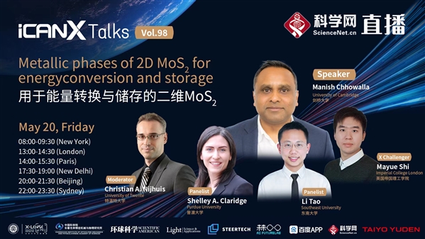 同时,本次讲座也邀请了来自特温特大学的Christian A. Nijhuis教授担纲主持。来自普渡大学Shelley A. Claridge教授和来自东南大学的陶立教授作为嘉宾,以及来自英国帝国理工学院的师马跃作为挑战者。精彩不断,敬请期待!2022年,iCANX将继续努力,为科学交流服务,提供一个全球学术交流的顶级平台,敬请大家期待!