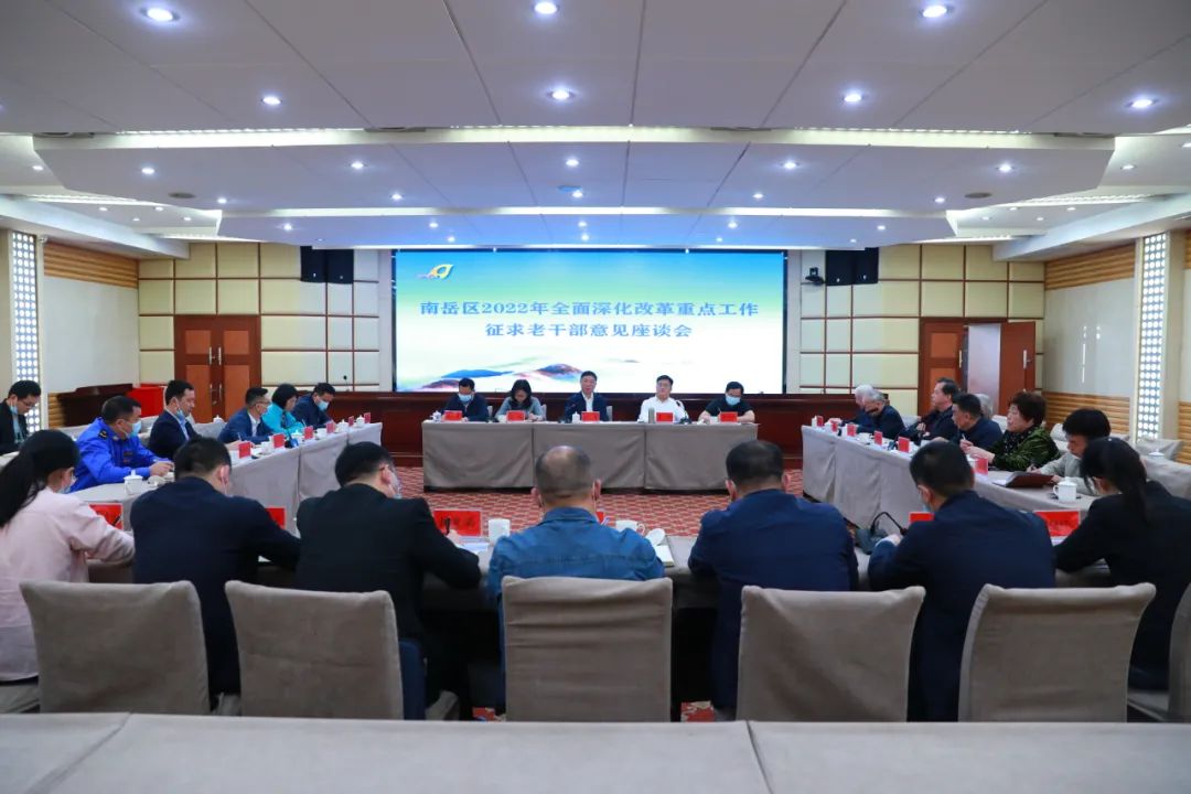 5月17日上午,南岳区召开2022年全面深化改革重点工作征求老干部意见座谈会。区委书记刘浪强调,要有忧患意识、南岳情怀,瞄准世界级文化旅游目的地的发展目标,在传承中改革,在改革中发展。