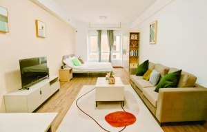 在公寓内部,万科城人才公寓配备了齐全的生活家电、厨卫设施及全套高品质定制家具软装设施,让刚步入社会的大学生和创业者拎包入住、生活无忧。在装修风格上,万科城人才公寓引入符合年轻人审美的现代简约风格,大面积选用木色地板,提升亲和力,背景墙选用莫兰迪色的涂料,增加主体性,软装上主要运用浅灰色与木色结合,色彩上明亮而不艳丽,赋予空间时尚、温暖、惬意的感觉。