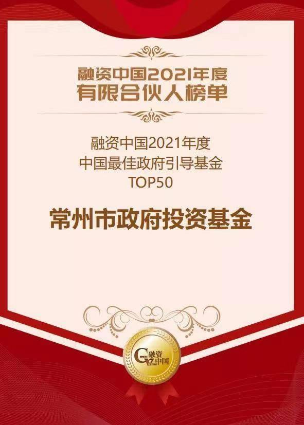 常州市政府投资基金入选“中国最佳政府引导基金TOP50”