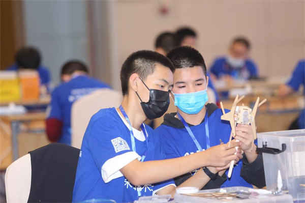 未来太空车复赛由现场制作和障碍物攀爬两部分组成,参赛队伍需在规定时间内完成太空车制作并通过尺寸核验,最后通过三轮障碍物攀爬比赛决出胜负。比赛中,参赛队伍以问题为导向,在充分考虑“太空车”爬行动力支撑、速度、阻力、摩擦力等制约因素下,进行装置的拼装及改装,随着“太空车”一个接一个地翻越过障碍物,现场同学们纷纷送上喝彩。