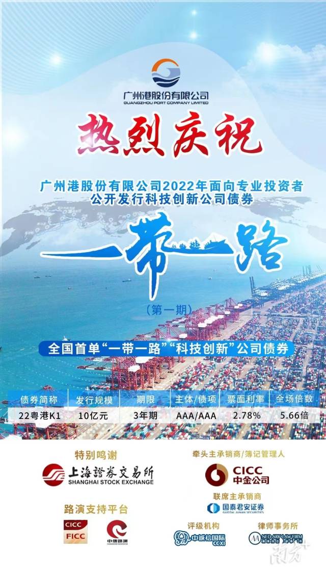 5月24日,广州港股份成功在上交所簿记发行2022年面向专业投资者公开发行科技创新公司债券(用于“一带一路”)(第一期),为全国首单“一带一路科技创新”公司债券。