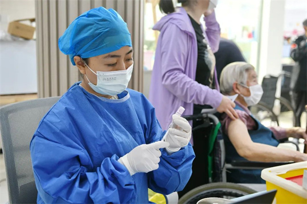 除了疫苗进社区以外,区卫健系统还积极对接民政部门,将疫苗接种服务送到各养老院、养老公寓,将“我为群众办实事”实践活动常态化、精准化、人性化。