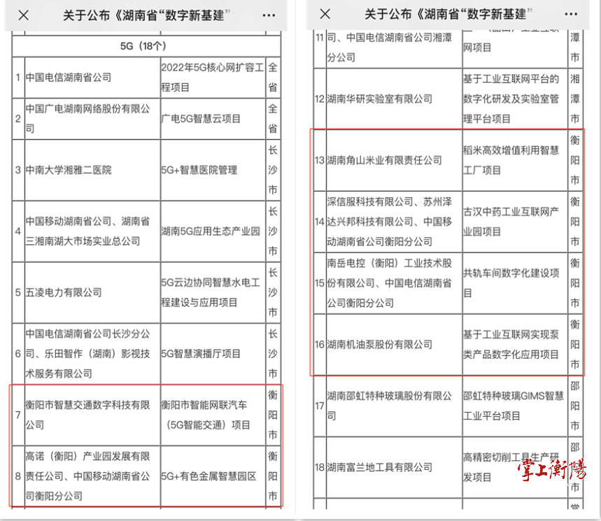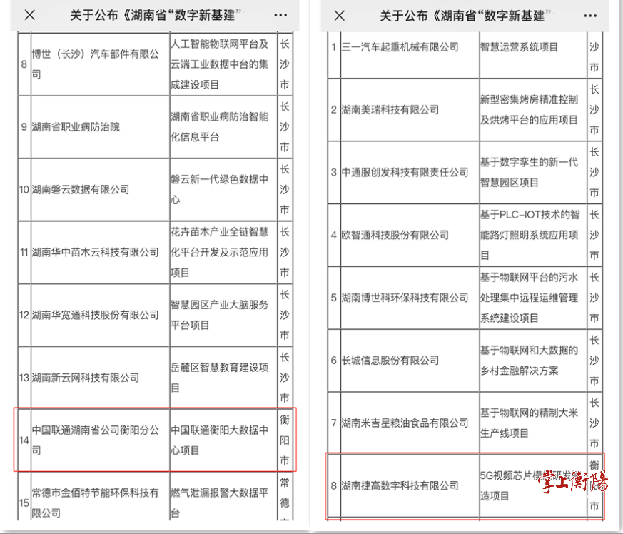 衡阳8个项目入选湖南省2022年“数字新基建”100个标志性项目名单