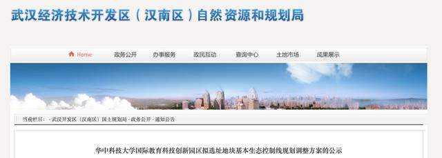 公示显示,鉴于该项目为省、市重大建设项目,现依据《武汉市基本生态控制线管理条例》第十六条的规定,武汉经济技术开发区拟申请调整该项目拟选址用地基本生态控制线规划,落实该项目选址,现面向社会进行公示,征求公众和利害关系人的意见。