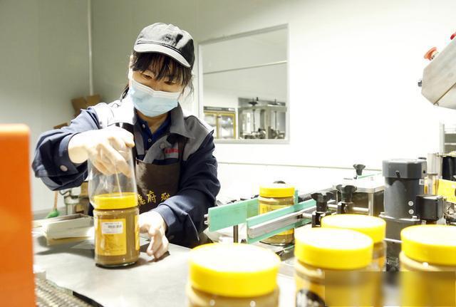 在河北省邢台市襄都区一家工厂生产线上,工人忙着包装芝麻酱。 新华社发