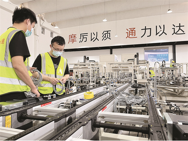 走进位于五星街道新新智能产业园的中科摩通(常州)智能制造有限公司的制造车间(以下简称“中科摩通”),工程师们正在加紧装配一条条锂电池包智能生产线,这批锂电池包生产线是金坛区一家全球性锂电池生产企业订购的,产线生产的电池包将被用于小鹏、广汽等多个品牌的新能源汽车上。