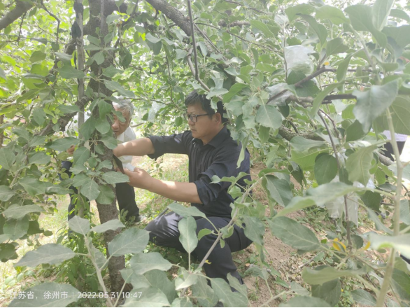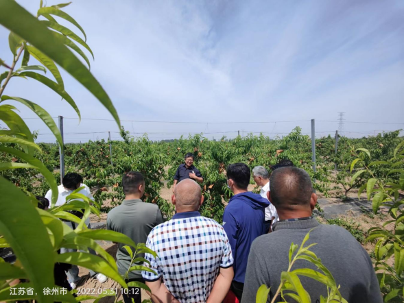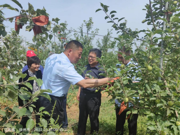 为落实徐州市“科创中国”试点城市建设服务乡村振兴战略和徐州市科协《关于开展2022年“全国科技工作者日”活动的通知》精神,针对丰县提出的“果树新品种引进管理、病虫害防控及果品市场行情预测”等需求,5月31日,徐州市科协党组成员、副主席宋恒,徐州市农业农村综合服务中心果树专家、二级推广研究员朱守卫和徐州市农学会秘书长、研究员孙近友等一行5人,专程赴丰县“徐州市果树研究所”、宋楼现代果业示范基地、三乡工程示范基地、丰县桃推广示范基地等果园现场开展苹果、葡萄、梨、桃等果树的引种示范、种植管理技术指导、培训活动。