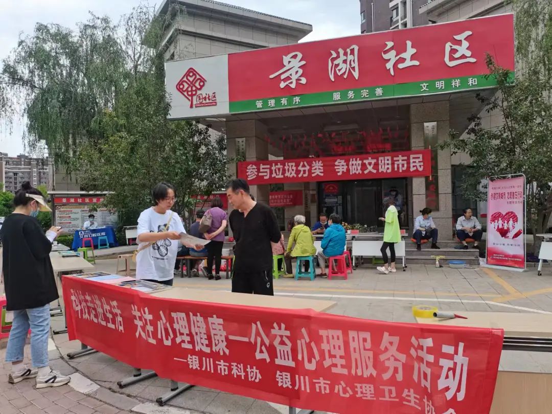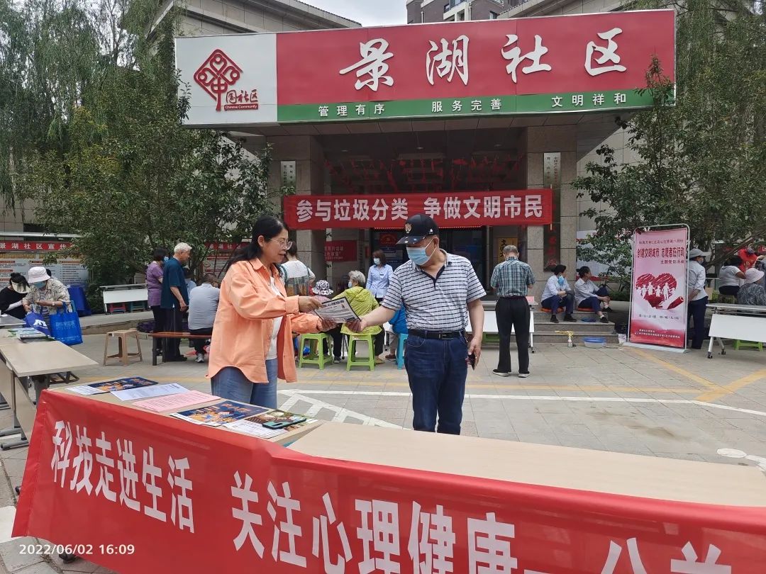 2022年6月2日,银川市心理卫生协会两位二级心理咨询师在景湖社区开展了“科技走进生活,关注心理健康”公益心理服务活动。