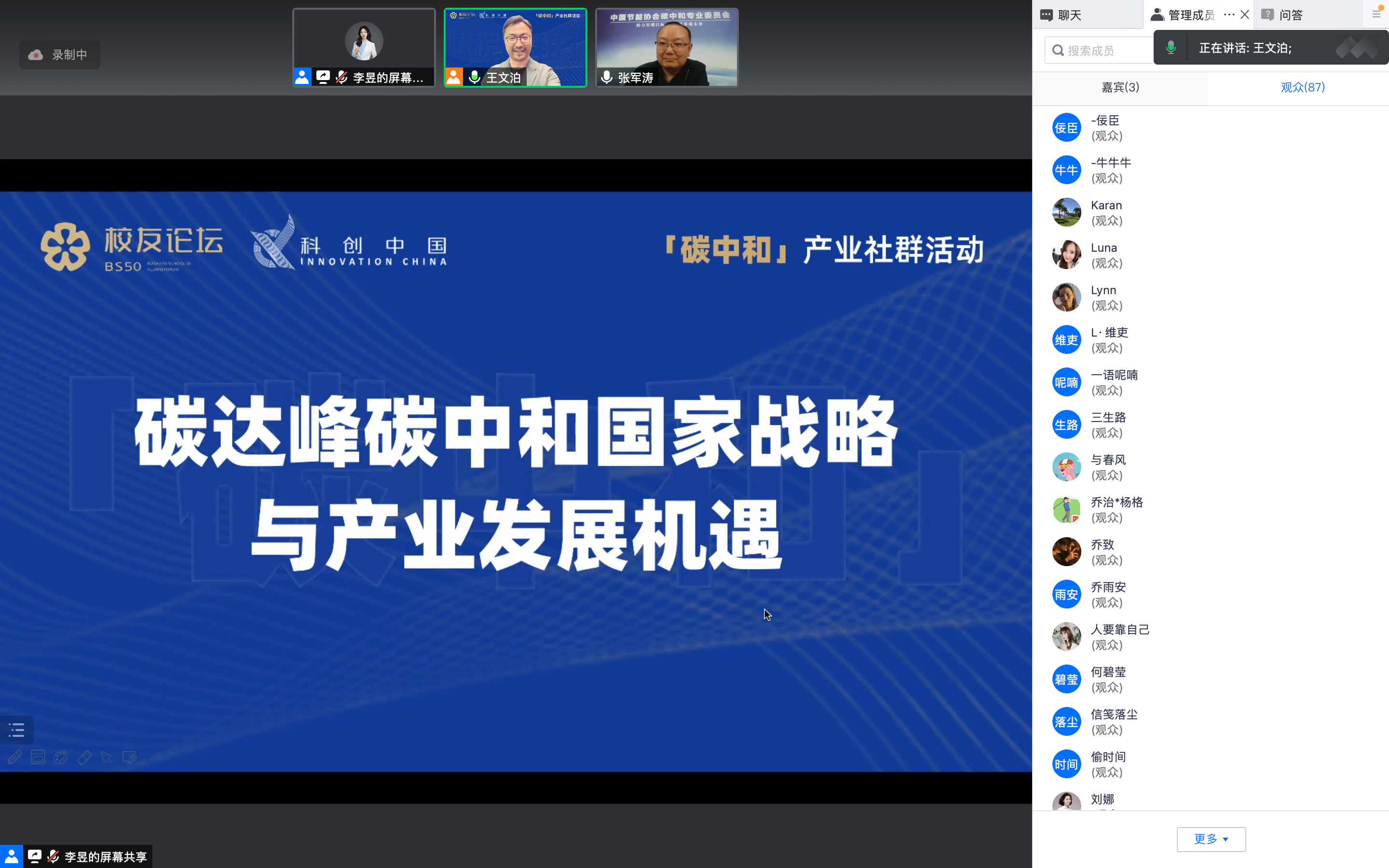 “科创中国”融媒体协同创新专业科技服务团组织各顶级商学院校友参加“碳中和”产业论