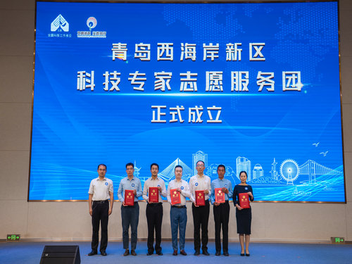 活动中,青岛西海岸新区科技专家志愿服务团正式成立。区科协主席殷宝勇面向全区广大科技工作者发出《汇聚科技力量 助力创新发展》倡议,倡议广大科技工作者提高政治站位,投身科技创新事业,发挥才智优势,汇集科创推动力量履行智囊责任,助力政府科学决策,汇聚一支爱国、奉献、奋斗、创新的志愿服务队伍,为实现新区高质量发展提供有力的科技支撑。倡议书一经发出,新区各行各业的80余名科技人员积极报名参加。活动现场区委副书记杜乐江为科技专家志愿服务团成员代表颁发了聘书。