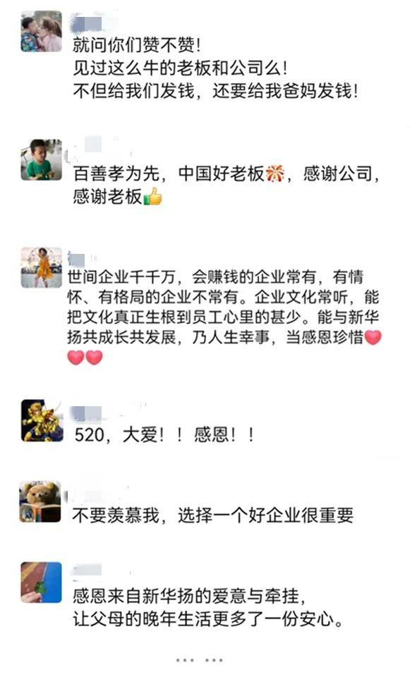 日前,光谷企业——新华扬宣布,启动“孝心津贴”制度,为工龄满5年及以上的所有员工父母每月发放“孝心津贴”,引发员工在朋友圈纷纷晒福利。