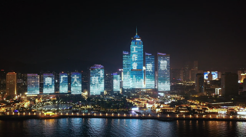 烟台市科协在滨海广场以灯光秀的形式致敬科技工作者