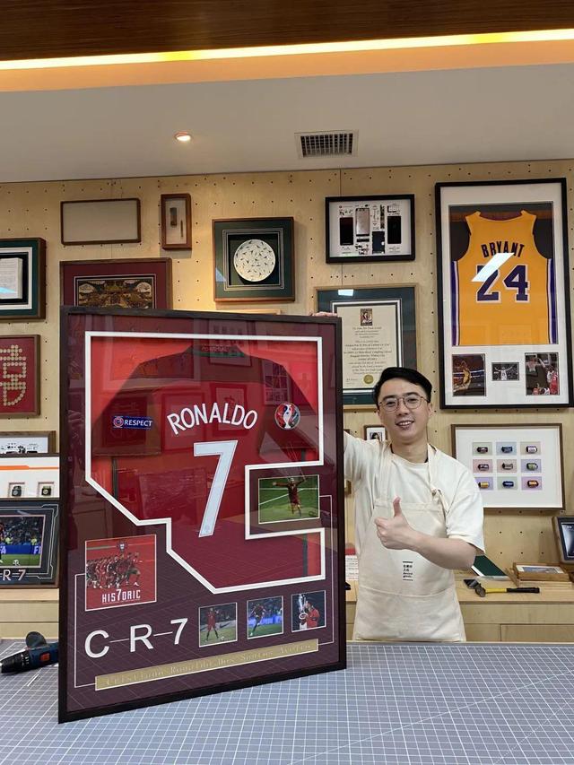 2021年欧洲杯期间,范伟浩试着装裱了自己的一件C罗球衣,一位外地网友在网上看到相关视频后,也将自己的一件同款球衣寄了过来。这是范伟浩正式接的第一个非字画类的实物装裱订单。