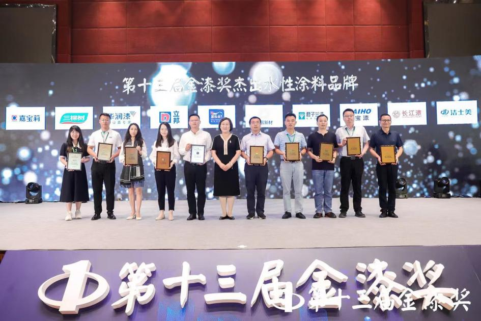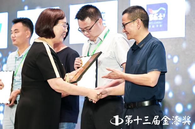 吴晓明秘书长向获得第十三届金漆奖杰出水性涂料品牌颁奖。