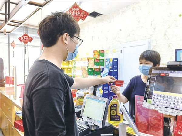 “今天花了50积分,还剩500积分。”6月3日端午节,戚大街社区居民司小三来到新时代购物超市,出示一张“同心卡”,用里面的积分“购买”了2袋蛋黄肉粽。她告诉记者,卡上的积分,是前阶段担任社区防疫志愿者时获得的。