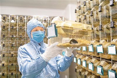 工作人员在哈尔滨工业大学生命科学中心实验动物平台观察小鼠。新华社记者 谢剑飞摄