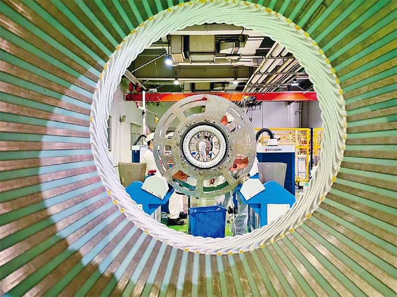 轨道交通与装备制造是湖南省长株潭国家自主创新示范区的两大国家先进制造业集群。图为在中车株洲电机公司厂房中拍摄的制造中的轨道交通装备牵引系统(2021年7月3日摄)。新华社记者 苏晓洲/摄