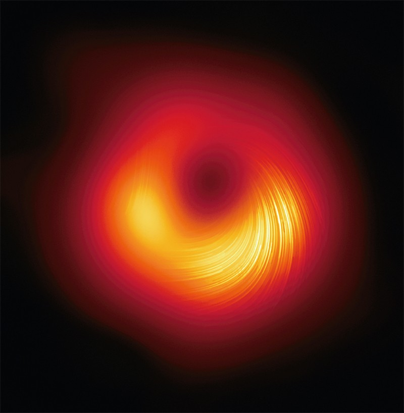 黑洞是浩瀚宇宙广泛存在的一种天体。为了观测到黑洞,天文学家将世界各地的8台望远镜连接起来,创建了一个类似于地球大小的虚拟望远镜。来自全球多个组织和大学的研究人员参与了这项国际合作研究,由中国科学院上海天文台科研人员领衔的中国团队也一直深度参与。图为2021年3月24日,相关科研论文发表,展示了人类首次“看见”的黑洞的偏振图像。新华社发 中国科学院上海天文台供图
