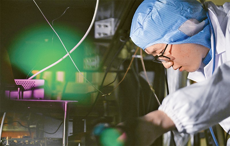 量子科技发展具有重大科学意义和战略价值,是一项对传统技术体系产生冲击、进行重构的重大颠覆性技术创新,将引领新一轮科技革命和产业变革方向。近年来,我国在该领域取得一批具有国际影响力的重大创新成果。图为2022年1月31日,科研人员在中国科学院量子信息重点实验室做实验。新华社记者 张端/摄