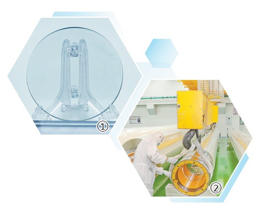 图①:新一代半导体材料氧化镓晶圆。龙巍摄(人民视觉)图②:新材料生产车间。许丛军摄(人民视觉)制图:赵偲汝