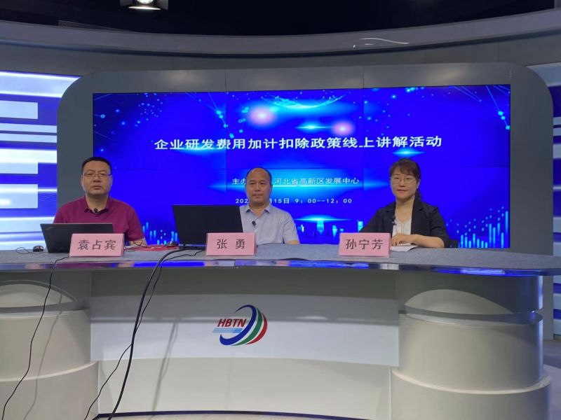 为落实稳住经济大盘决策部署,发挥高新区在稳经济保增长促发展中的关键作用,帮助园区企业更加全面理解研发费用加计扣除优惠政策,最大限度释放政策红利,激发企业创新动力活力,6月15日,河北省高新区发展中心联合省科技厅政策法规处,在全省高新区开展企业研发费用加计扣除政策线上宣讲培训。