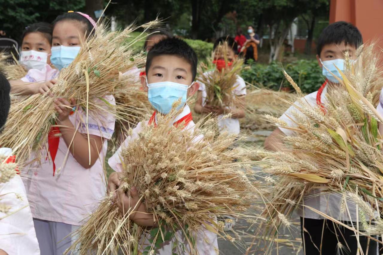 火辣的5月,复学后的校园溢满了夏嬉的喜悦。高年级的同学化身护花使者,把班级植物角的杜鹃花移栽进校园彩虹马路旁的花圃中,把在家培育的向日葵移栽到吾艺园,让花期延长,让校园留香。“收割、脱粒、磨粉”“采摘、品尝、制作”,经开实小特有的“光阴故事”在每个学生的指尖流淌。麦地里,同学们挥舞着镰刀收割小麦。并在老师的带领下,尝试脱粒,磨粉。麦地虽小,却孕育了孩子的梦想;麦粒虽小,却饱含孩子们半年的辛劳;磨粉虽少,却积蓄了半年的力量。每个孩子都收获满满,脸上洋溢着兴奋和喜悦。