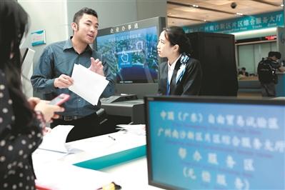 香港创业青年在南沙政务服务中心办理企业开办手续。